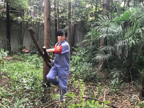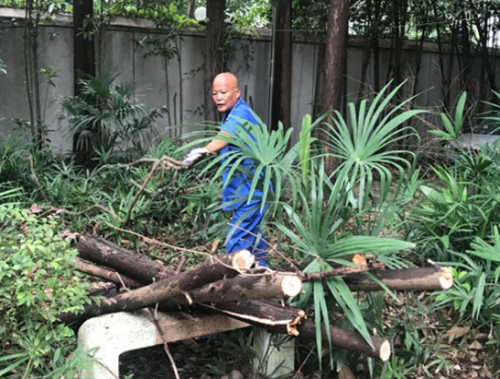 圖為清理小區(qū)綠化帶
