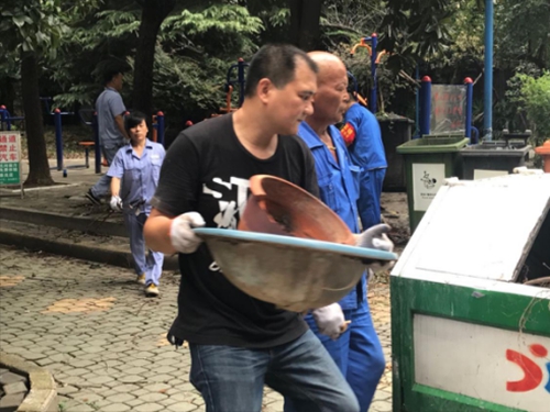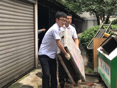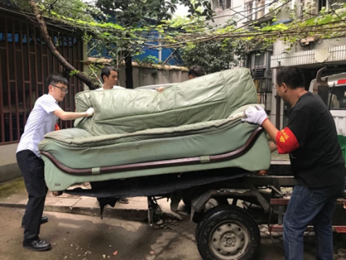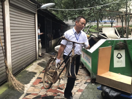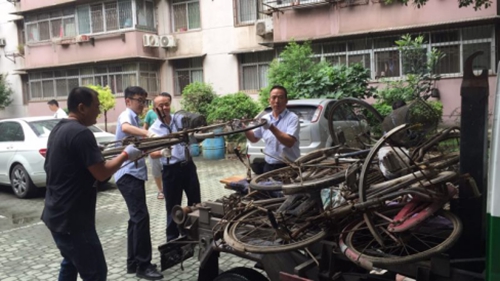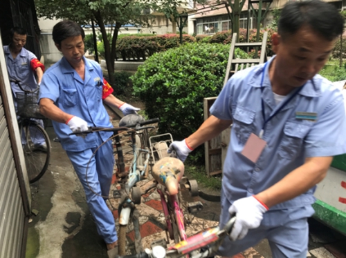 圖為清理小區(qū)廢棄堆積物